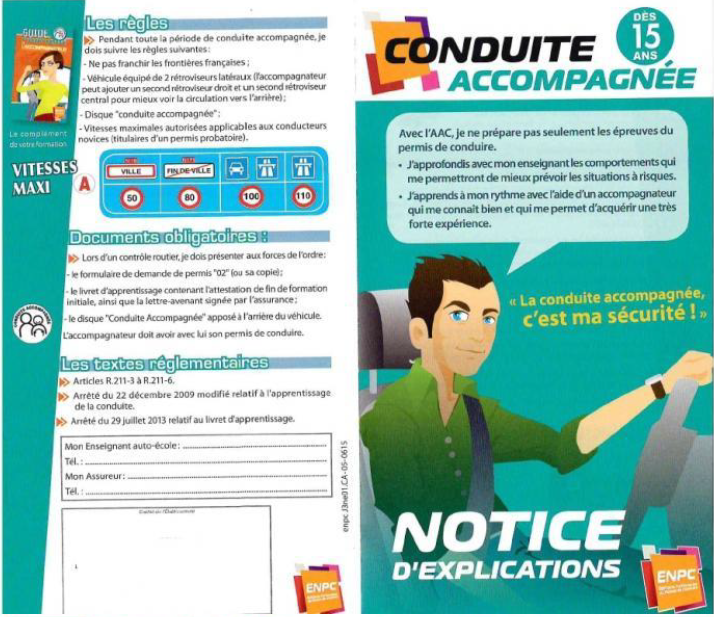 IMPORTANT : en conduite accompagnée, ayez toujours avec vous le formulaire de demande de permis de conduire ou sa photocopie, le livret d’apprentissage et le document d’extension de garantie de l’assurance. Seul le formulaire de demande de permis de conduire permet de justifier de la situation d’apprentissage de la conduite, en cas de contrôle par les forces de l’ordre.