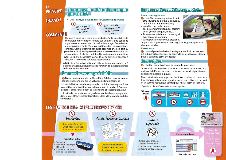 IMPORTANT : en conduite supervisée, ayez toujours avec vous le formulaire de demande de permis de conduire ou sa photocopie, le livret d’apprentissage et le document d’extension de garantie de l’assurance. Seul le formulaire de demande de permis de conduire permet de justifier de la situation d’apprentissage de la conduite, en cas de contrôle par les forces de l’ordre.
